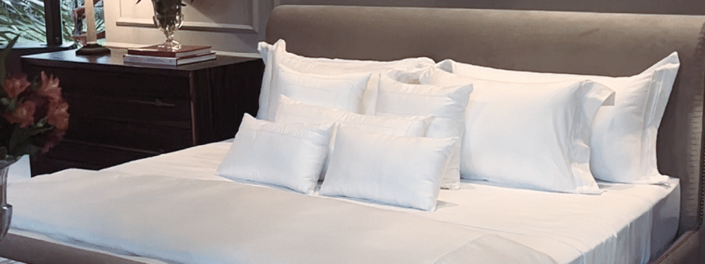 O que mais chamou a atenção do arquiteto na Artelassê foi a excelência intrínseca de seus produtos. A qualidade superior de cada jogo de lençol, a maciez inigualável das fronhas e a durabilidade evidente de toda a roupa de cama da Artelassê alinhavam-se perfeitamente com a proposta de um ambiente de alto padrão. Igualmente, a variedade de texturas e a riqueza dos tecidos permitiram que Malouf criasse camadas de conforto e sofisticação visual que complementavam a arquitetura do quarto de forma sublime.